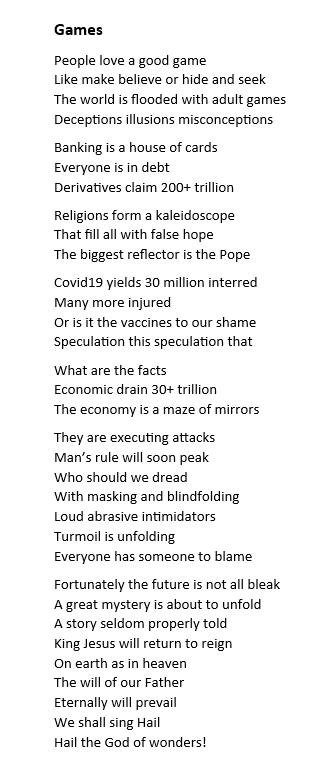 See: "Games" in POETRY below.